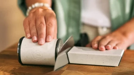 Für den Hausgebrauch und das selbstständige Nachschärfen zwischendurch empfehle ich die Rollschleifer von HORL. Damit können Sie auch alle Ihre anderen Messer schärfen.